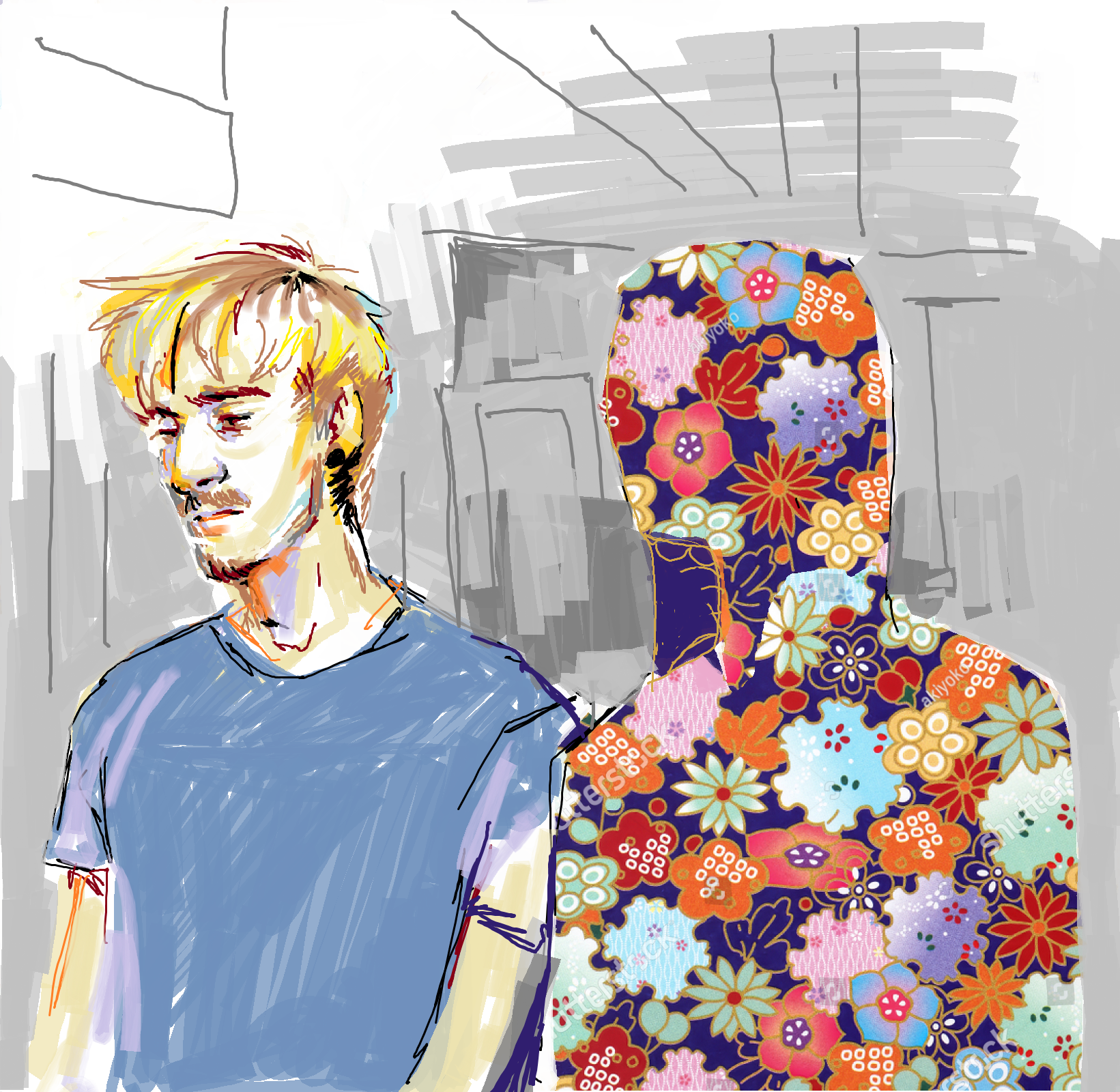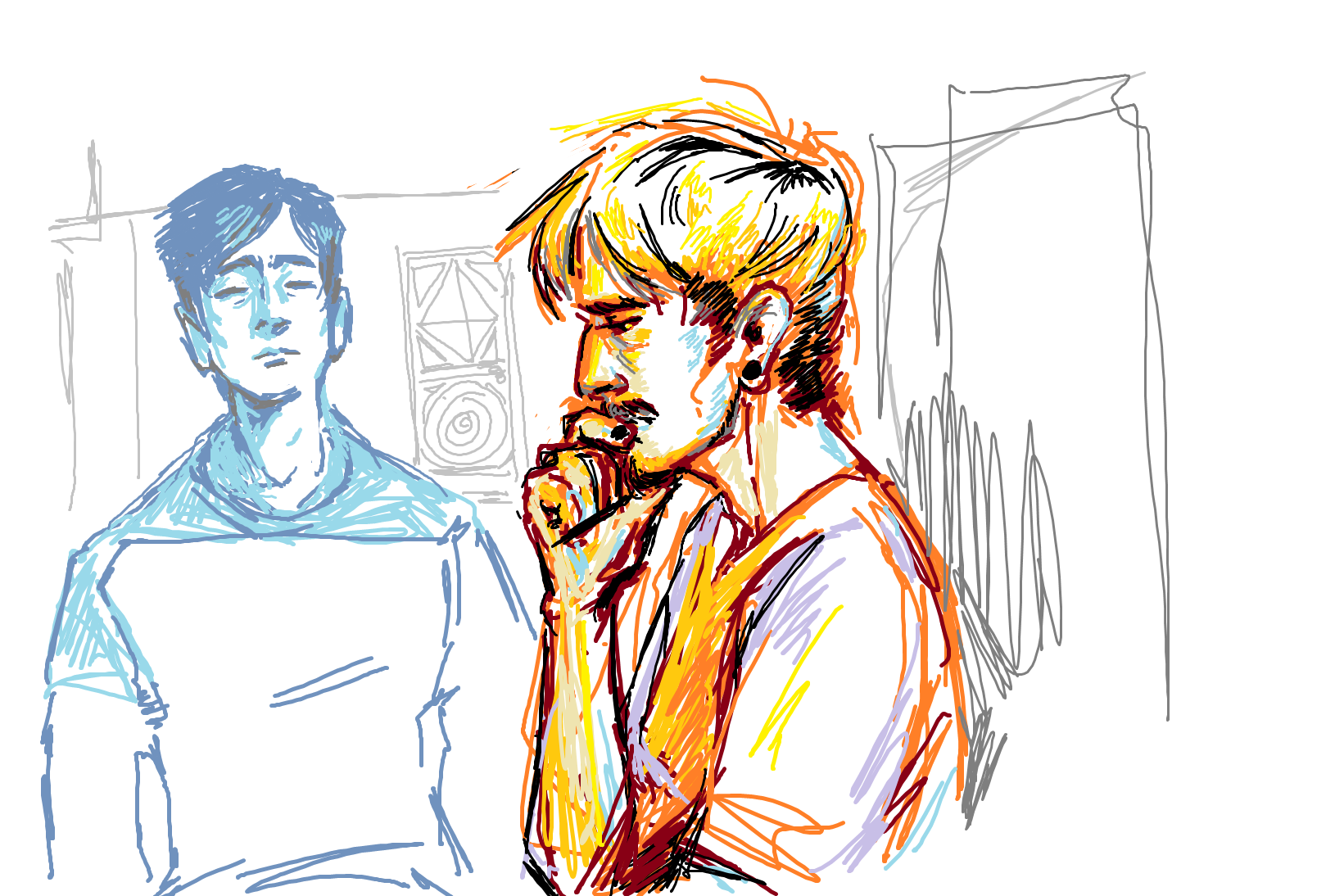 Logan et Adam, croquis préparatoires.